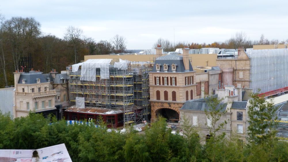 Como você pode ver nas imagens abaixo, publicadas pelo site Disney & More, muitas fachadas de prédios, fiéis ao filme, estão quase concluídas. O parque trabalha nelas dando o acabamento de envelhecido. No local haverá um restaurante, o mesmo do filme, e um dark ride.